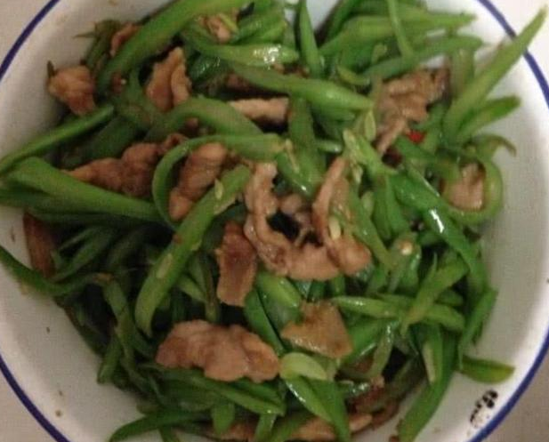 步骤一:扁豆撕掉两边的老丝,放入清水中洗干净,然后切成细丝。
