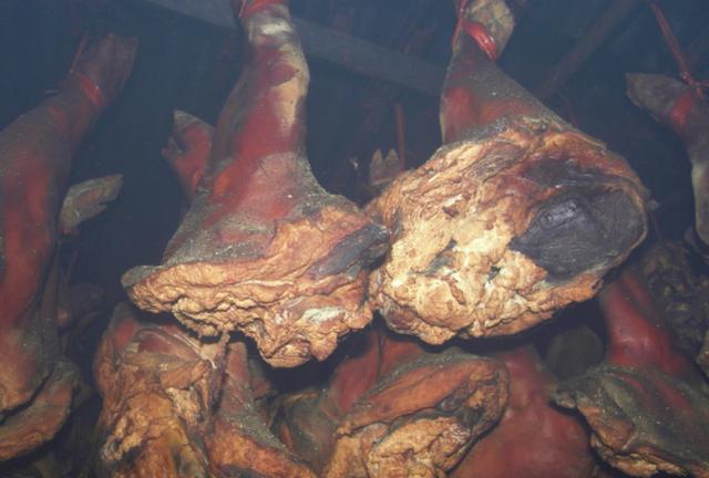 贵州腊肉:对于很多农村人来说,所谓“年味”肯定少不了地道的腊肉,在贵州农村家家户户都会有“杀年猪炕腊肉”的传统,贵州的腊肉是烟熏肉,做好的腊肉放在房间里,然后使用一些松柏的树脂燃烧熏制而成的,贵州腊肉的烟熏风味是非常浓郁的,因为没有特别加其他香辛料,吃起来也是原汁原味的熏肉香。