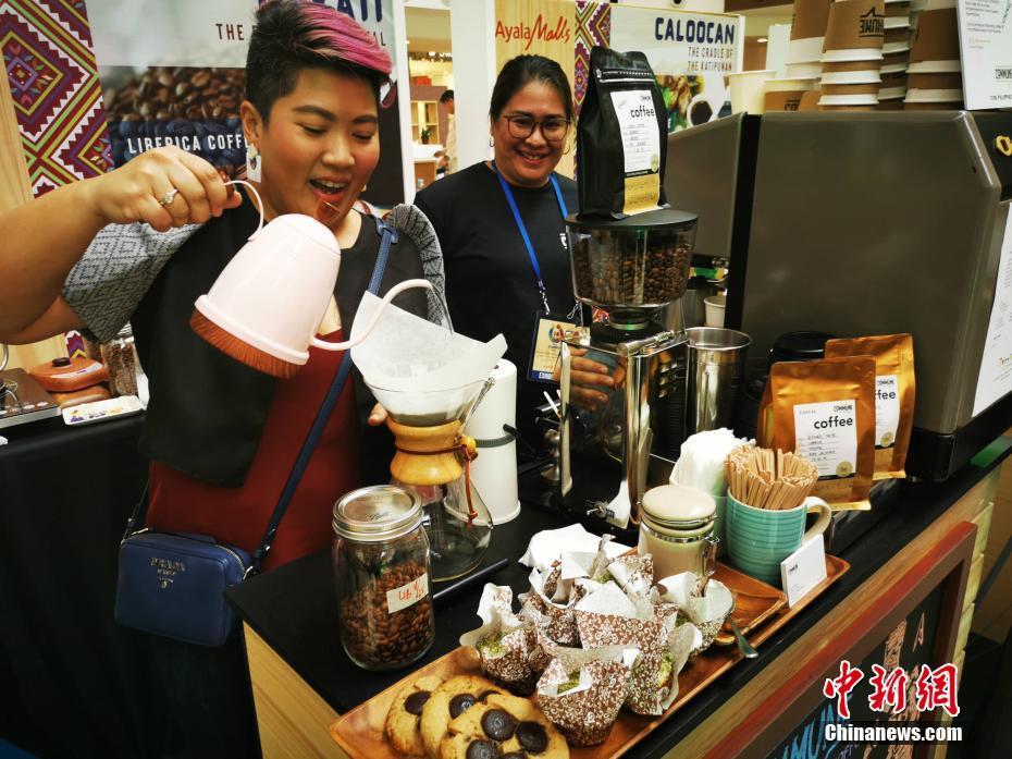 12月12日,菲律宾马尼拉一商场举办圣诞新年菲律宾本土美食节。图为商家推介菲律宾本土咖啡。中新社记者 关向东 摄