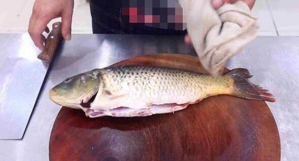 1,将买回来的鲤鱼去掉鳞片、鱼鳍,然后划开腹部,取出内脏与鱼鳃、牙齿,然后放到清水中洗上几遍,后拿出放在案板上;