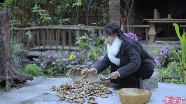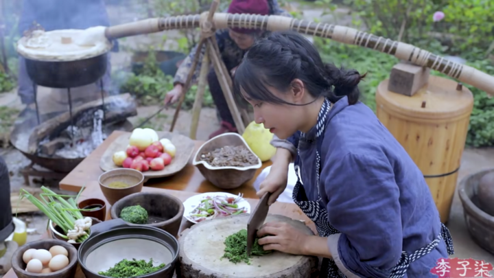 李子柒的视频主要两大类内容,一类是吃相关的,一类是传统文化相关的。