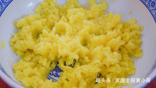1.将土豆清洗干净,然后刮去皮切成厚片,放在盘中,然后给它蒸熟,蒸熟之后呢,用擀面杖给它擀成泥,最好不要有一点颗粒。