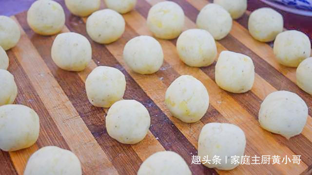 3.面团揉好时候,拿出一小块,揉长条,再揉成剂子,以此类推,然后再把这些剂子呢,揉成小圆球,放着备用。