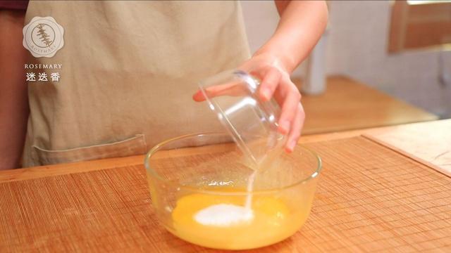 1.蛋黄和蛋清分别打入两个无水无油的盆,将蛋黄打散