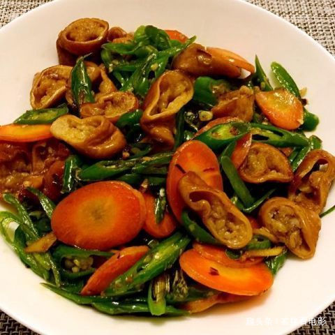 食材:肥肠一根;胡萝卜半根;二条青一小把;葱姜蒜料酒少许