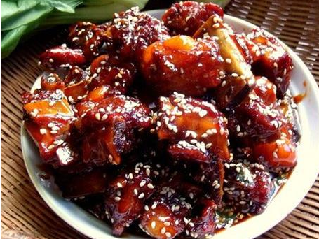 备用食材:排骨500克,白砂糖5勺,香醋5勺,料酒2勺,芝麻1茶匙;