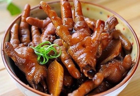 鸡爪、花椒、八角、桂皮、香叶、冰糖、料酒、老抽、生抽、十三香、姜