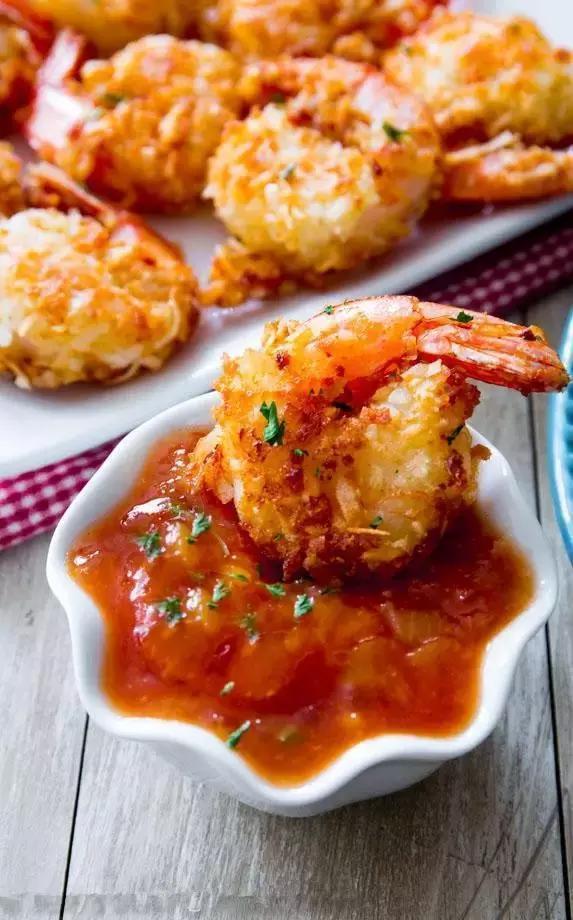 材料:半斤虾(去壳,去内脏),甜椰丝,面粉,半茶匙盐,半茶匙胡椒,2个鸡蛋,1杯面包糠,植物油。