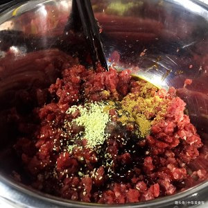 3.牛肉加各种调料加一个鸡蛋加水