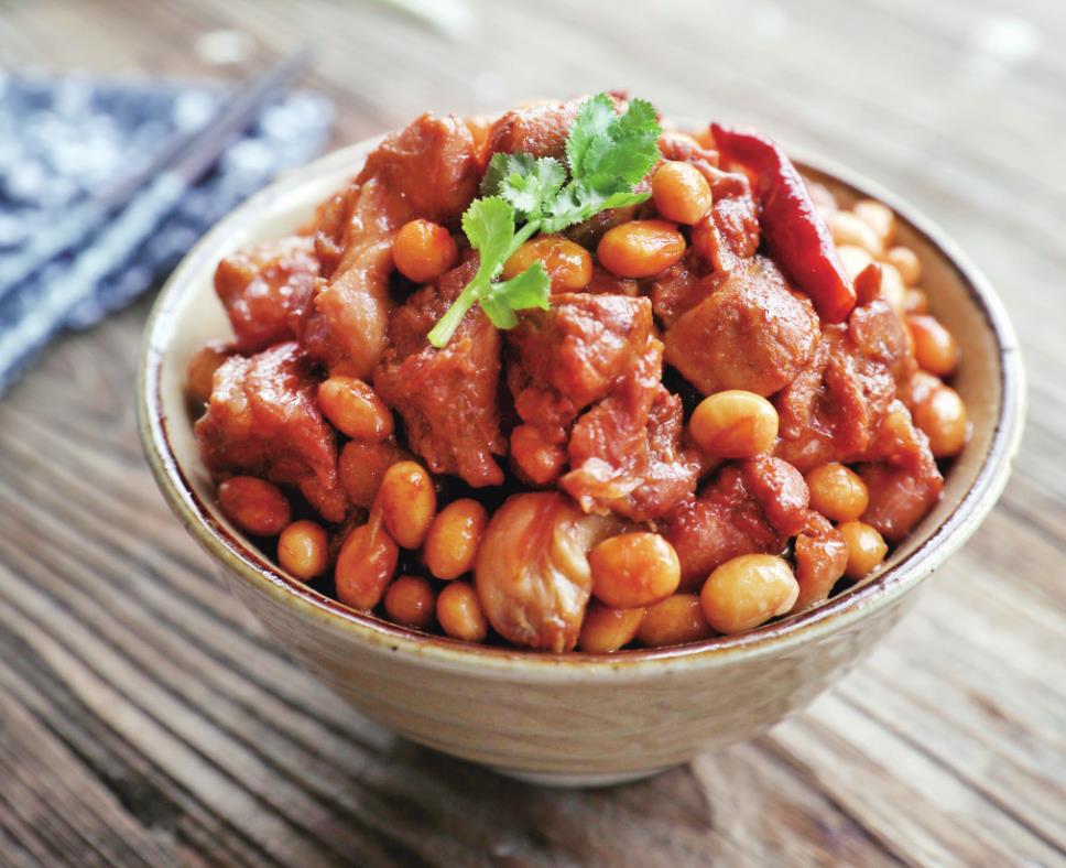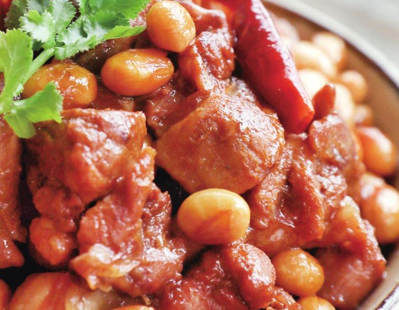 鸭肉搭配啤酒,做好的鸭肉不但不腥,反而多了一些啤酒的香气,紧致有嚼劲。泡好的黄豆经过充分炖煮,非常软糯、鲜香。