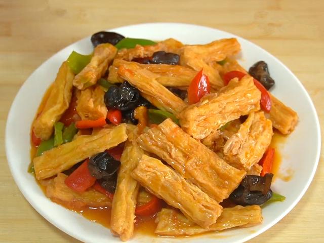 腐竹想要好吃,从挑选到浸泡都很重要,前几天听我的厨师哥哥说,挑选腐竹要选那种颜色有光泽,淡黄色的,还有很小的空心,闻起来有淡淡的清香,这样的比较好吃。今天的家常烧腐竹我加入了青红椒和木耳,把腐竹先下锅炸一下再炒,这样做出来的腐竹口感筋道又好吃,下面我就把它的具体做法分享给大家,喜欢的朋友进来看一下吧!