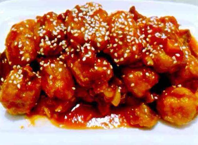 6.加入生抽、糖、醋调味后淋入湿淀粉勾薄欠出锅,撒上葱花,糖醋素排骨就做成啦