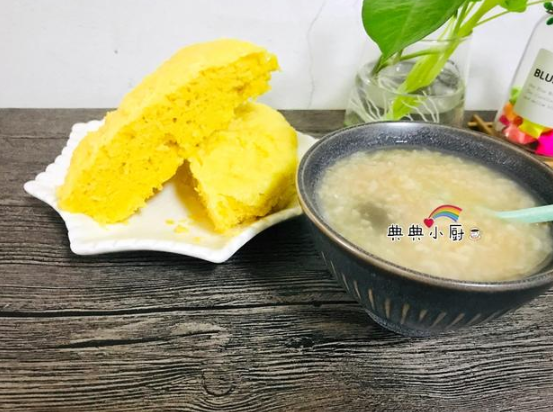 可可味戚风蛋糕,豆粥。说话,小朋友之前并没有多爱可可呢,直到有一次我用可可做了戚风之后,她竟然比原味的戚风更喜欢,甚至很多时候让我蒸馒头的时候也会让我加一点儿可可粉。只是,这一次做戚风蛋糕的时候,我可可粉加多了点儿,导致成品有少许的消泡。好在小朋友看不出来有什么不一样。