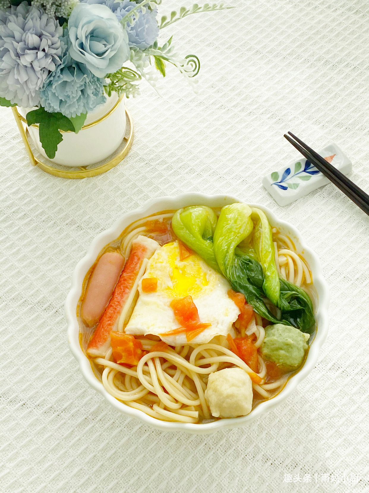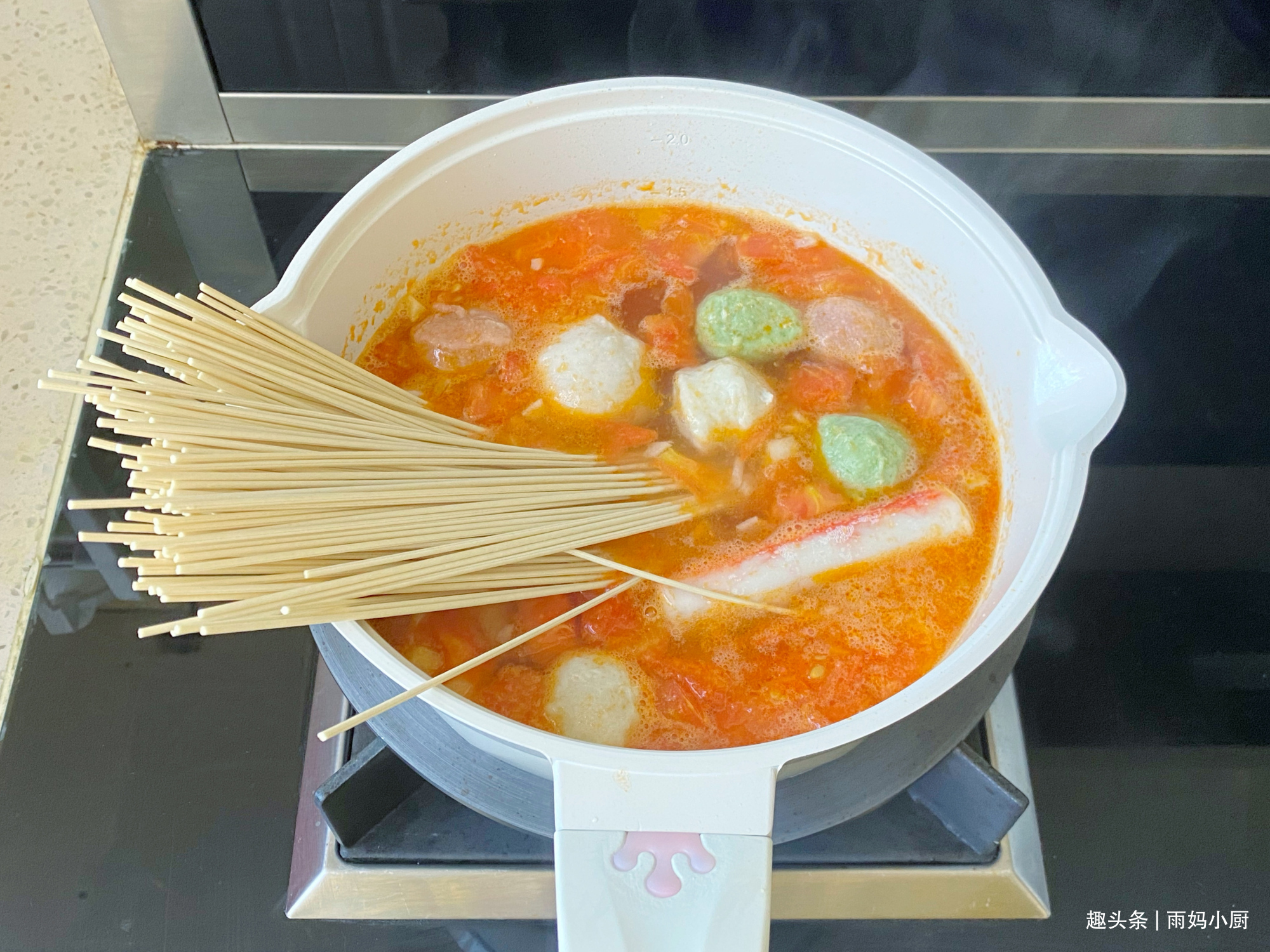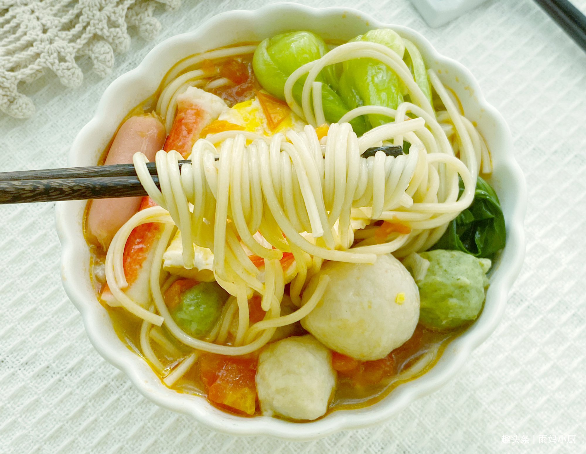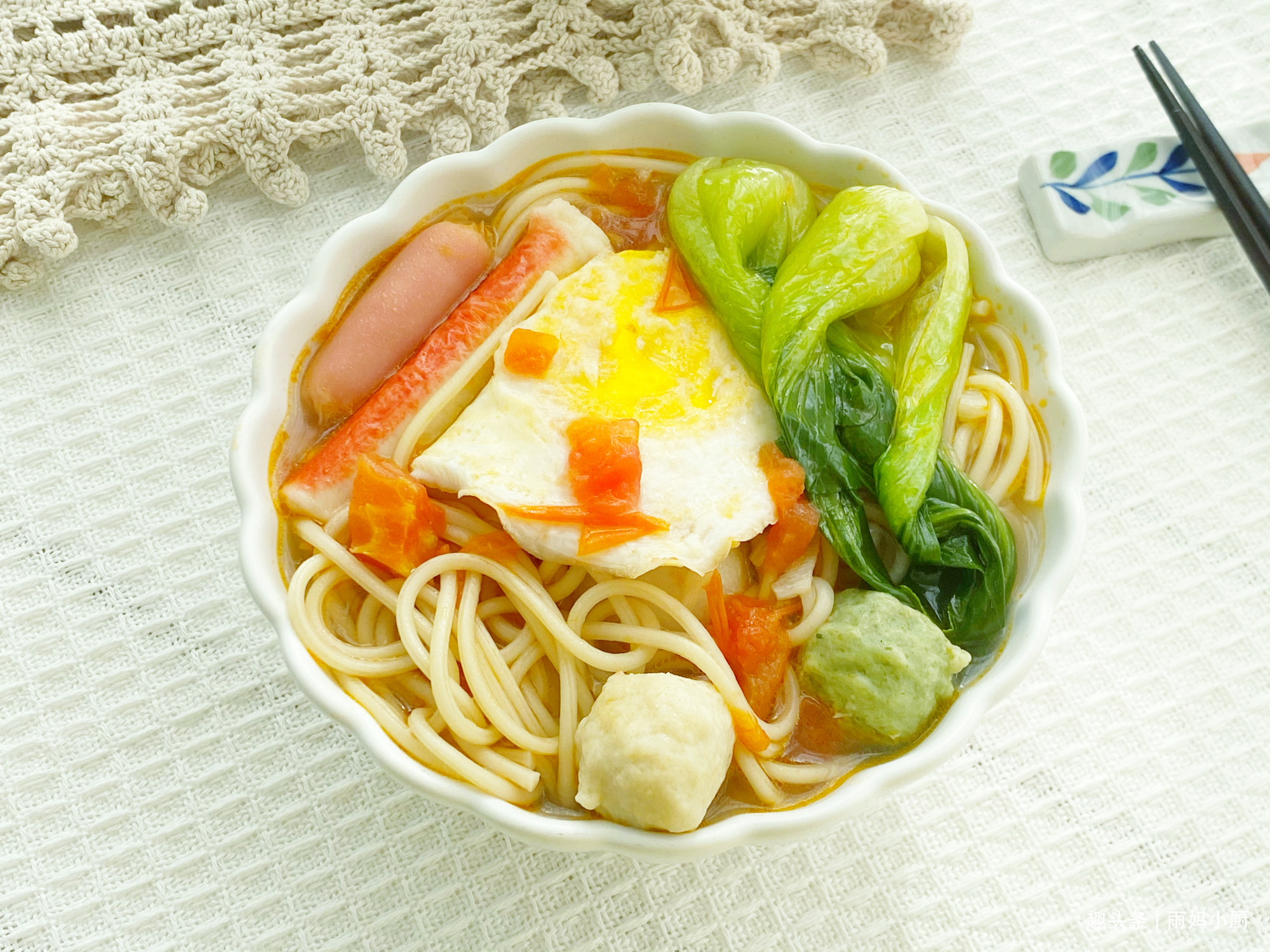 面条是北方常见的面食,经常用来当作主食换着花样吃,煮面、炒面、拌面、汤面、冷面,天冷了最喜欢的还是烫面,用番茄打底做成汤料,加水煮开后,放入自己喜欢的食材和面条,一起煮熟,就能上桌,时间不超过10分钟,用来当早餐最简单方便。今天的早餐面放了小丫头爱吃的煎蛋和各种丸子,菠菜丸子、鱼丸和牛肉丸,还少不了包心鱼丸,这几样食材,不管是煮面还是涮火锅,都是少不了的美味,更是上班族和学生党,早餐的最佳选择。