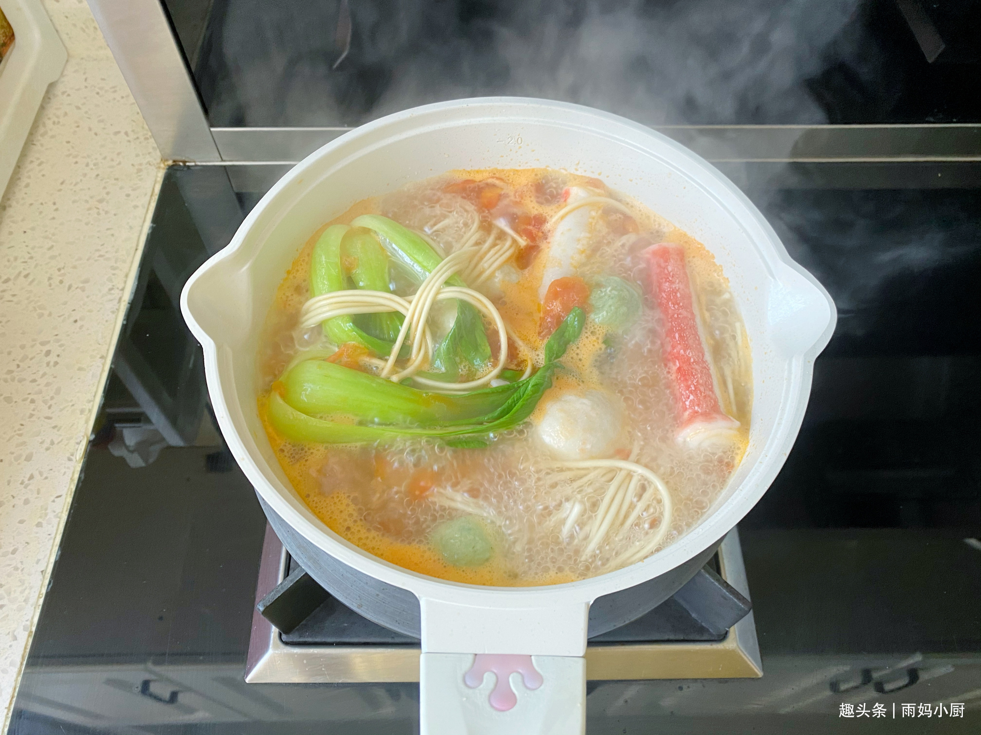 2、火锅丸子不喜欢吃的也可以换成虾或者肉片一起煮,味道也很鲜美。