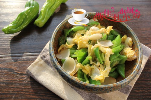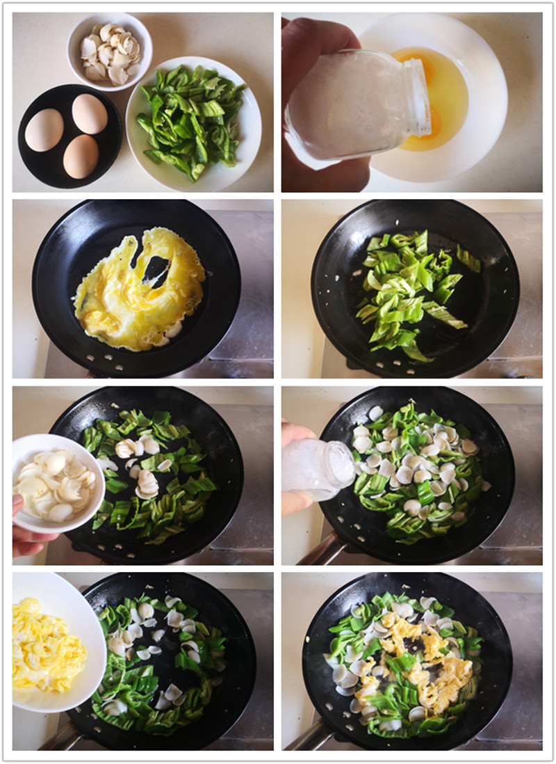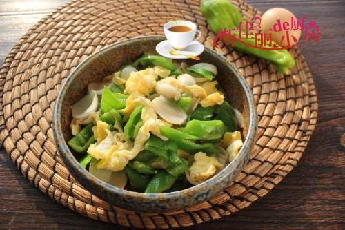 原料: 鸡蛋 3个 百合 2个 青椒 2个 油盐 适量
