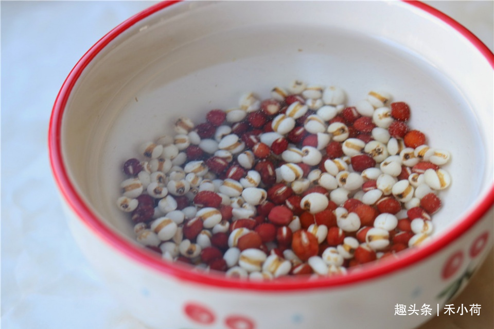 2、红豆和薏米比较难煮,提前清水泡几个小时,会缩短煮的时间。