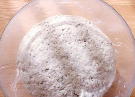 第三步,再将黑芝麻粉倒入在其中,用手揉成一个光滑的面团,盖上一张保鲜膜,放入温暖的地方开始发酵,差不多2个小时,看到体积变成原来的2倍大;