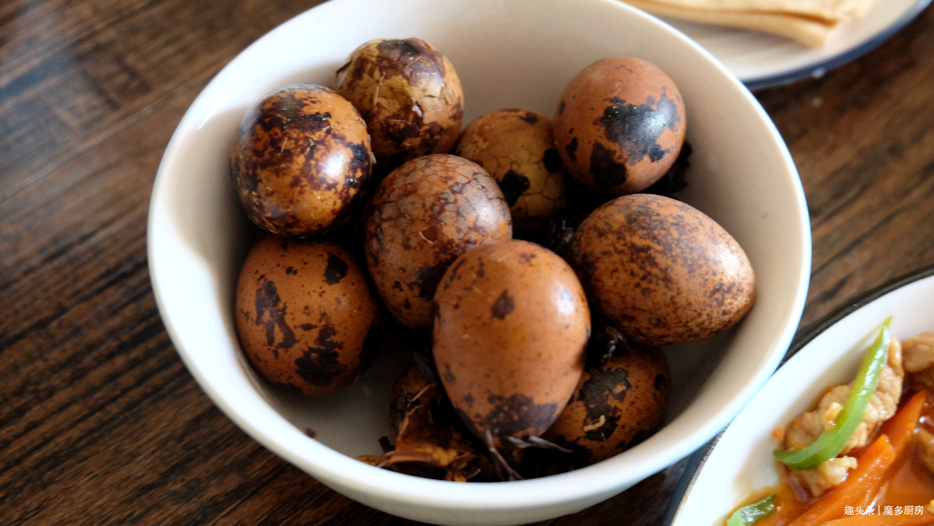 给孩子们准备了茶叶蛋,不过这次不是鸡蛋,而是鹌鹑蛋,个头小,比较可爱,孩子们也挺喜欢的,提前一晚煮熟,敲破表皮, 再放进煮开的茶叶水里,加盐煮1-2分钟,关火焖着过夜,第二天一早再加热一下,热乎乎又入味的茶叶蛋就做好了。