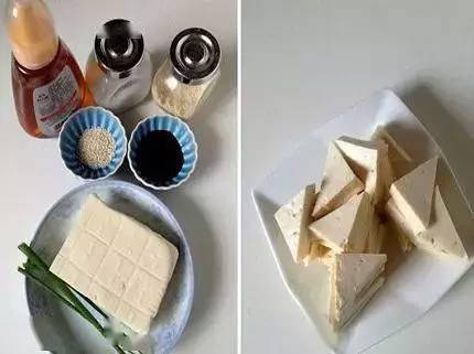 老豆腐、白芝麻、香葱、生抽,叉烧酱、蜂蜜、盐、鸡精
