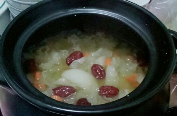 (3)炖银耳时,注意用火,先大火炖煮,再小火焖炖,最后再关火焖,按照这个方法操作很省时间,但要用砂锅更好这么做。