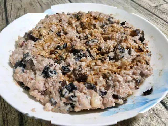 1、先放土鱿粒,然后放入马蹄粒,云耳,木耳搅拌均匀,最后加1汤匙水,1只鸡蛋搅拌均匀(目的让蒸出来的肉质嫩滑,松软)。调味:1勺糖(提鲜,让肉质更软),生粉2勺,2汤匙花生油(让肉质更滑)。用筷子顺一个方向搅拌均匀。最后加一勺盐,1汤匙生抽,搅拌均匀即可。(注意不要把肉搅拌成胶,成胶后的肉蒸出来口感很硬)
