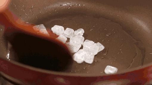 不管是哪种方法,很多人都是直接下冰糖,这是个坏习惯。冰糖直接下锅,如果温度太高,直接就焦糊了,糖色发黑,味道也发苦。下面我和大家分享一下炒糖色的技巧,大厨说,掌握3个技巧,保证糖色鲜甜,红亮光泽,不发黑不发苦。