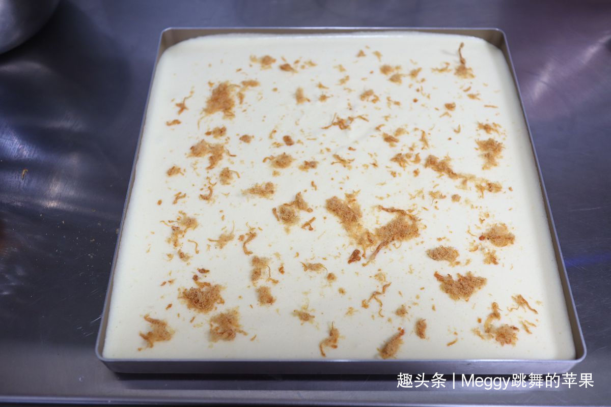 24. 用抹刀抹平黄芥末酱,再均匀地铺撒肉松;