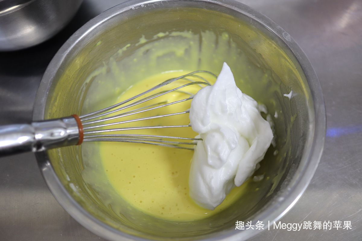 13. 取1/3蛋白糊入蛋黄糊中;