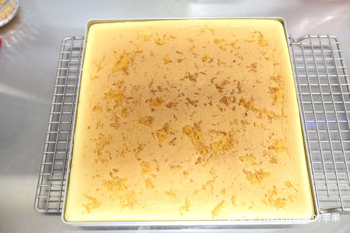 19. 出炉后端起烤盘震几下,无需脱模和倒扣,放在晾架上3分钟,表面也无需盖油纸;