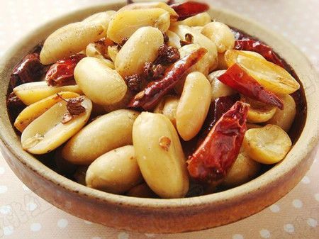 5.起油锅,倒入花生米炸制,小火炸到花生表面金黄捞出