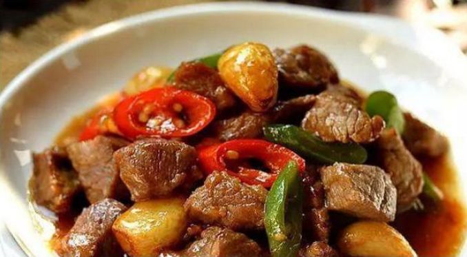 1、 牛肉块逆着纹路切成大小均匀的肉粒;