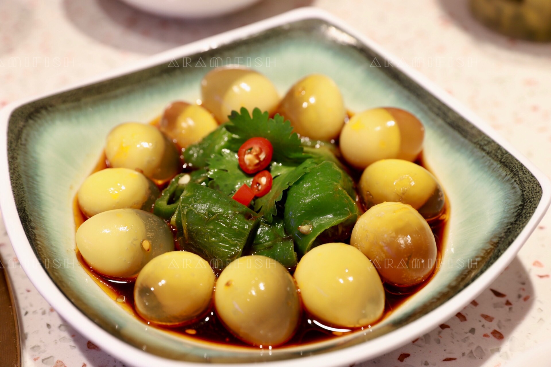 青椒皮蛋,鹌鹑蛋做的皮蛋,一口一个,开胃又满足。