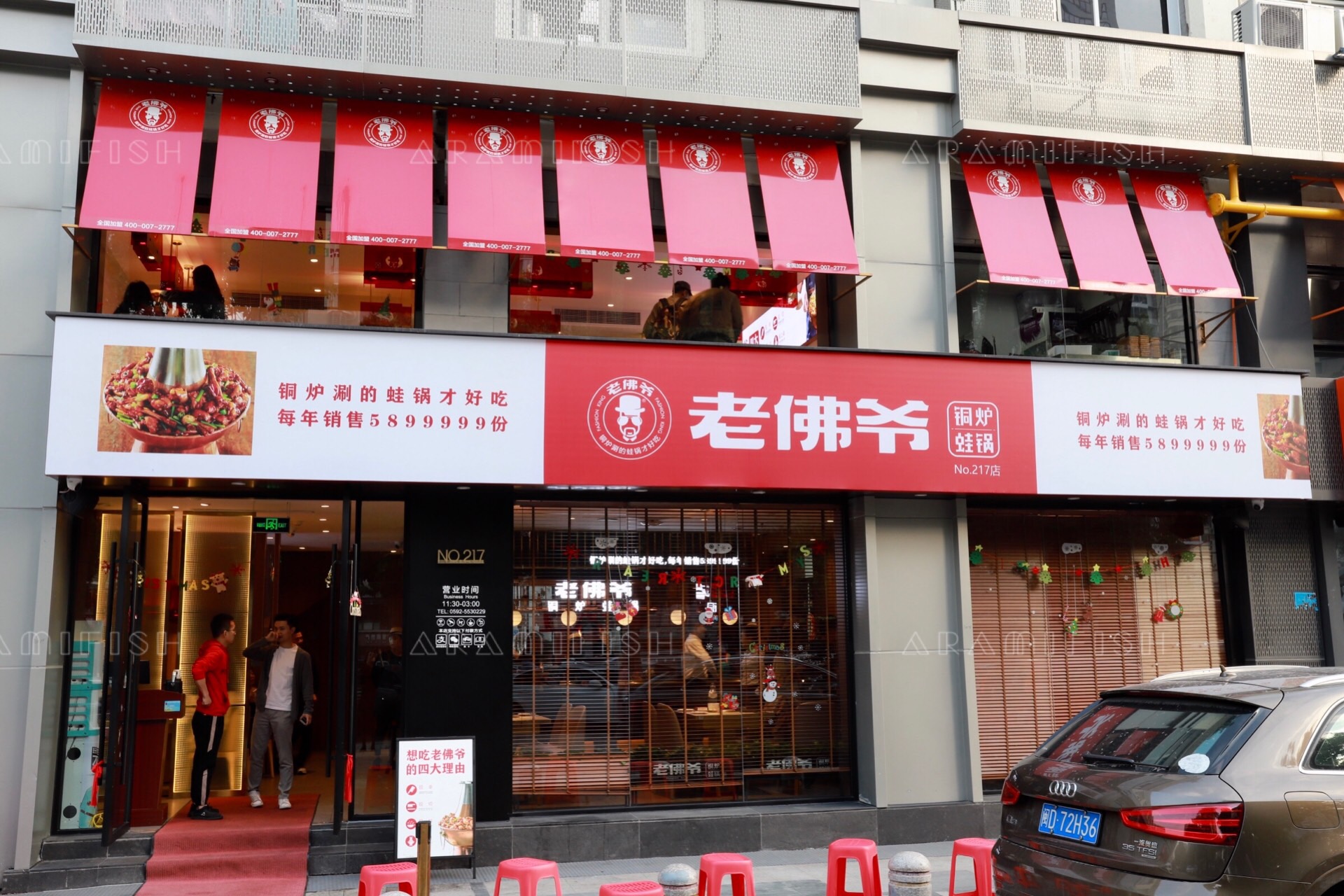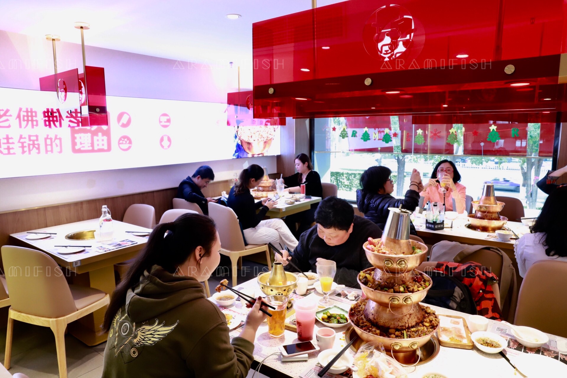 说起炭火蛙锅,不得不提最近特别火的一家网红店——老佛爷。这家在全国拥有六百多家连锁店的网红品牌,如今也开到厦门来了,在厦门拥有四家分店。要说老佛爷有多火,那就是我们在用餐的同时居然还能偶遇到抖 音 网 红 红雨老师也来吃了,真的是很受欢迎呢!