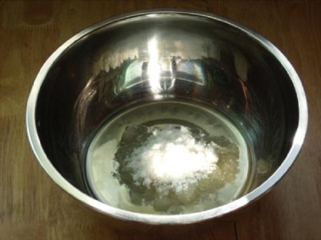 3、先倒入35克左右的牛奶,轻轻混合均匀