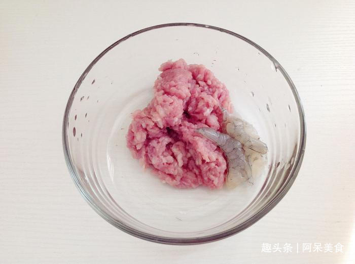 2、里脊肉洗净,剁成肉末,加入少量料酒一点点盐腌制10分钟