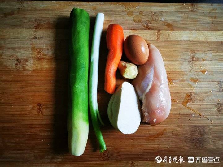 1、配料:潍坊萝卜,胡萝卜,鸡胸肉,豆腐,鸡蛋,馒头,玉米淀粉,面粉。