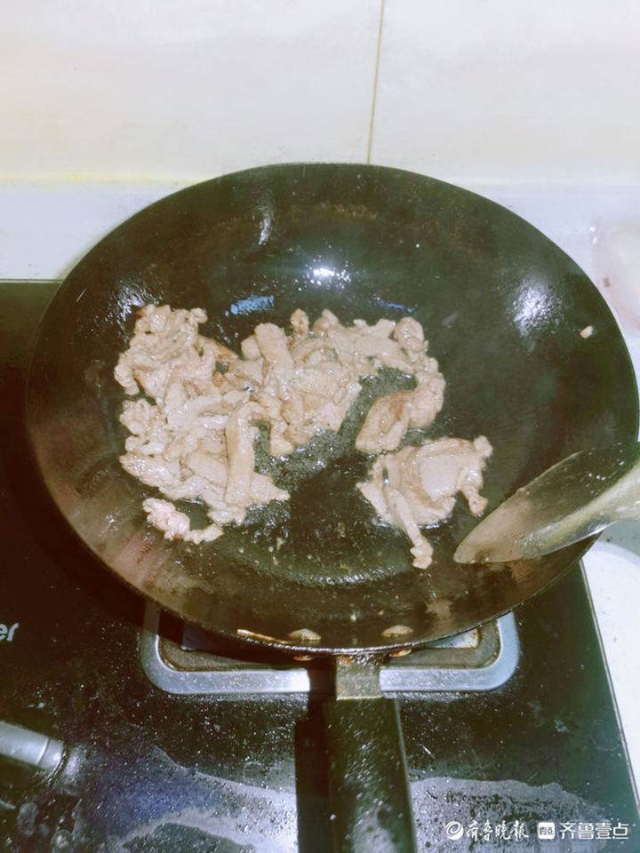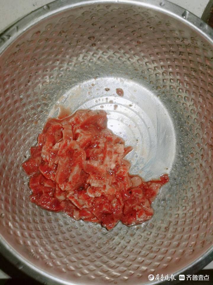 1月23日,壹粉“喵喵”向齐鲁晚报官方客户端齐鲁壹点情报站发来一则美食情报,简单家常的青椒牛柳,炒好的牛柳味美滑嫩,配上青椒,好吃下饭。