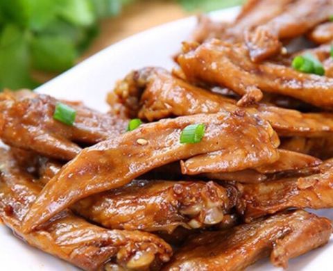 食材:鸡翅尖300克。酱油,姜片,蒜片,白糖各15克,大料,桂皮,干辣椒各5克,卤水适量。