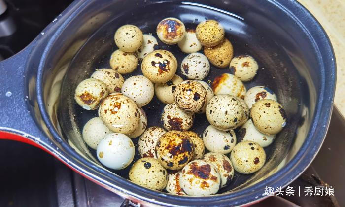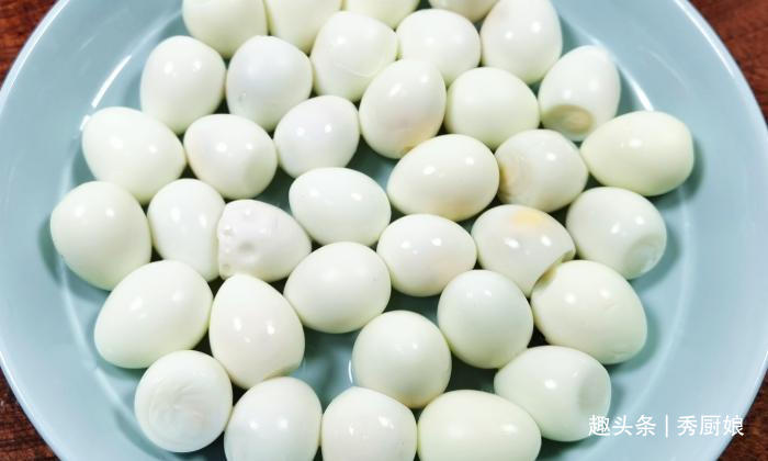 第一步:取10几个鹌鹑蛋,清洗干净后,放入锅中,大火煮开后,再煮8分钟,将鹌鹑蛋煮熟。