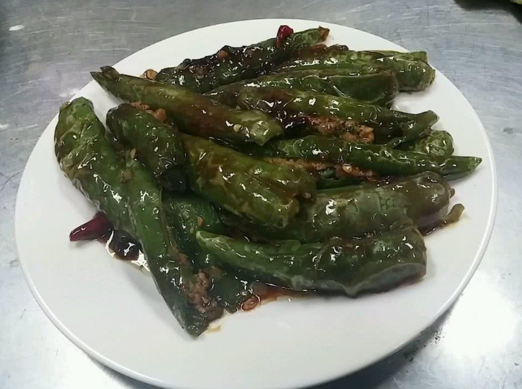 川菜有太多的经典菜了,最朴实的就是“麻婆豆腐”了,也不知道为什么叫这个名字,还有水煮肉片、宫保鸡丁等,这些菜中辣椒其实都是调味品,真正当主角的只有这道菜——虎皮尖椒。虎皮尖椒没有肉,但吃起来比肉还香,香辣开胃。用虎皮尖椒,要选用长长的尖椒,也可以用圆椒,尖椒口感和味道更好。