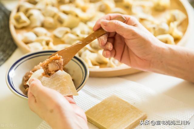 等我记事起,我妈的手艺已经炉火纯青,一放学就看见她坐在小方桌前飞速地包着馄饨。一叠5厘米高的馄饨皮不到3分钟就变成了码得整整齐齐胖嘟嘟的小馄饨,像运动会上列队整齐的方阵。