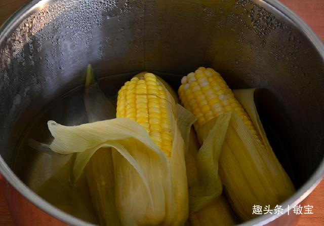 2、玉米保存好再取出来食用时,在煮玉米的这个环节也是要注意的,别将玉米的外衣撕掉再煮,而是连同它的外衣一起煮,而且在煮制的时候,得往锅中的水里添一些食盐和食用碱进去,水量也要没过全部的玉米,这样煮出来的玉米,口感依旧鲜甜如初。