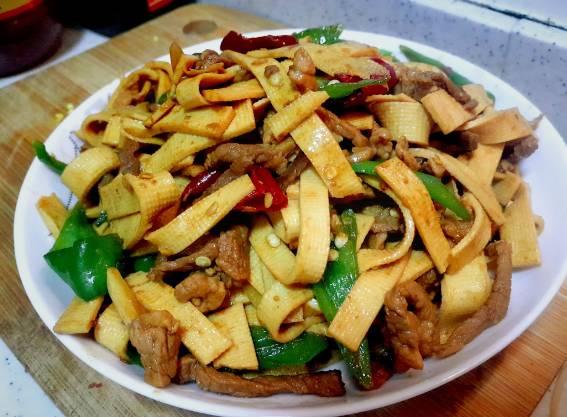 最后加入千张,加适量的盐调味,翻炒至千张入味即可