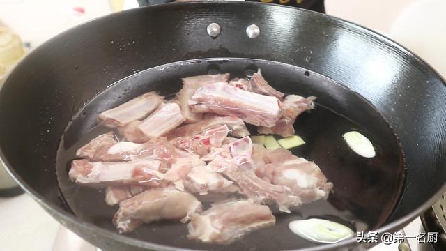 等食材备好以后,我们把排骨焯一下水。
