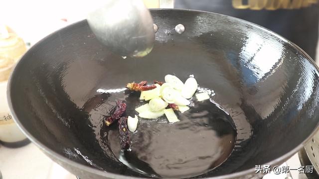 8.重新起锅添入食用油,放入葱姜,干辣椒爆香。
