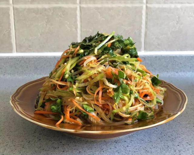 1.先说凉菜。海蜇皮,超市有现成的拆开拌一下,和饭店的一样好吃。