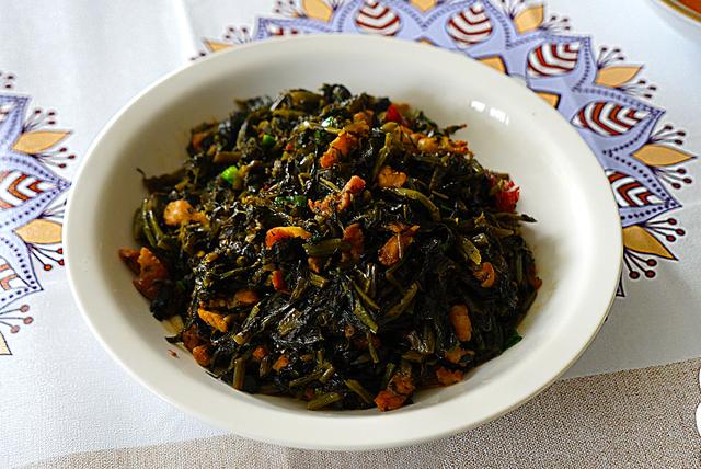 这道是肉丁炒咸菜,肉丁花了6块钱,因为是配菜,所以也没有必要买很多猪肉。用到的咸菜是婆婆昨天给的,这种咸菜是用雪里蕻搓盐巴腌制出来的,不管是炒肉丝,还是炒豆腐炒鸡蛋都是一道特别下饭的菜。