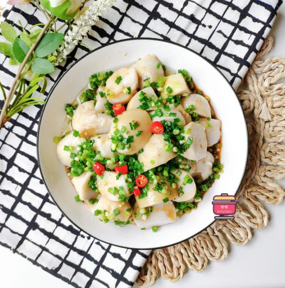【葱油芋头】这道菜更普遍的叫法是【葱油芋艿】,它是在江南一带流行甚广的风味名菜,江南一带常把这种小小的毛芋头称作【芋艿】。【葱油芋艿】的做法十分简单,做好之后葱香味浓郁,芋头粉糯香软,让人越吃越爱。