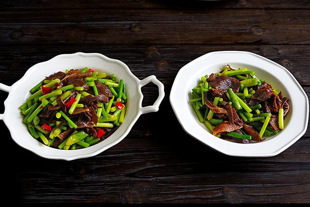 具体做法:1、将毛肚洗净后切成小段。2、将蒜薹切成小段备用。3、热锅热油,放入辣椒、生姜、蒜薹、生抽、盐,开大火爆炒1分钟。4、倒入毛肚、鸡精,继续3分钟,即可装盘食用。